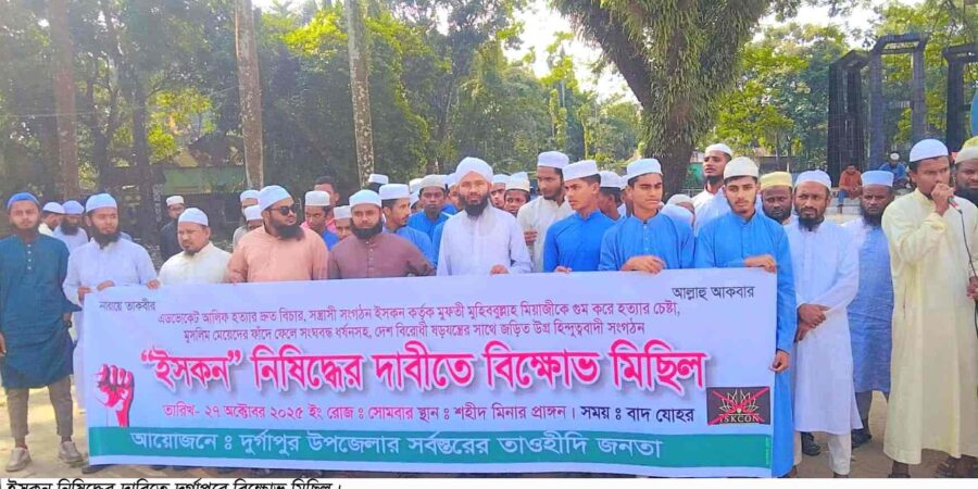 ইসকন নিষিদ্ধের দাবিতে নেত্রকোনার দুর্গাপুরে বিক্ষোভ সমাবেশ