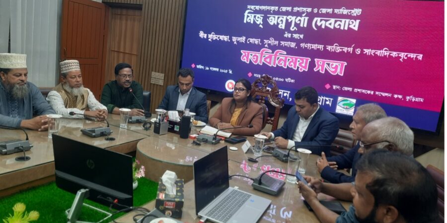 কুড়িগ্রাম নবাগত জেলা প্রশাসক অন্নপূর্ণা দেবনাথ এর সাথে মুক্তিযোদ্ধা, জুলাই যোদ্ধা, শুধী সমাজ ও সাংবাদিকদের মতবিনিময় সভা অনুষ্ঠিত হয়েছে।