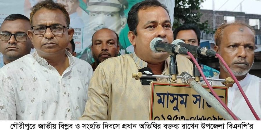 গৌরীপুর পৌর বিএনপি’র যুগ্ম আহবায়ক মনিরুজ্জামান পলাশের সঞ্চালনায় প্রধান বক্তা হিসেবে বক্তব্য দেন পৌর বিএনপি’র সদস্য সচিব সুজিত কুমার দাস।