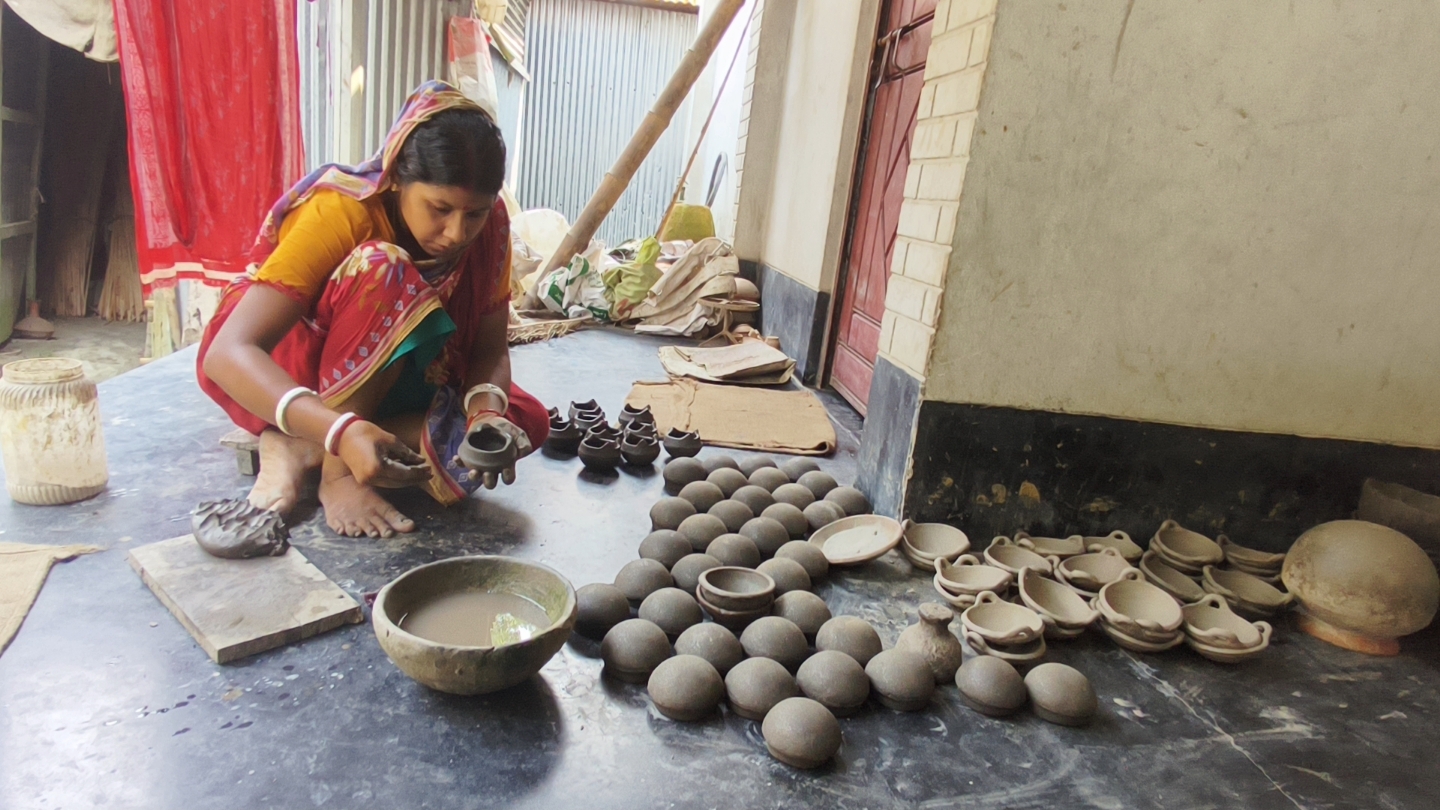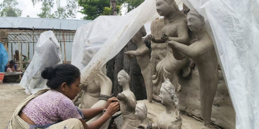 কুড়িগ্রামের বিভিন্ন কুমোরপাড়া ও পালপাড়ার প্রতিমা কারখানাগুলোয় এমন ব্যস্ততা এবারই প্রথম চোখে পড়ছে। বছরের পর বছর ধরে পুরুষরাই এই শিল্পের প্রধান কারিগর ছিলেন। কিন্তু এবার চাপ বেড়েছে আগের যেকোনো সময়ের চেয়ে বেশি। জেলায় প্রতিমার চাহিদা প্রায় দ্বিগুণ হয়েছে।