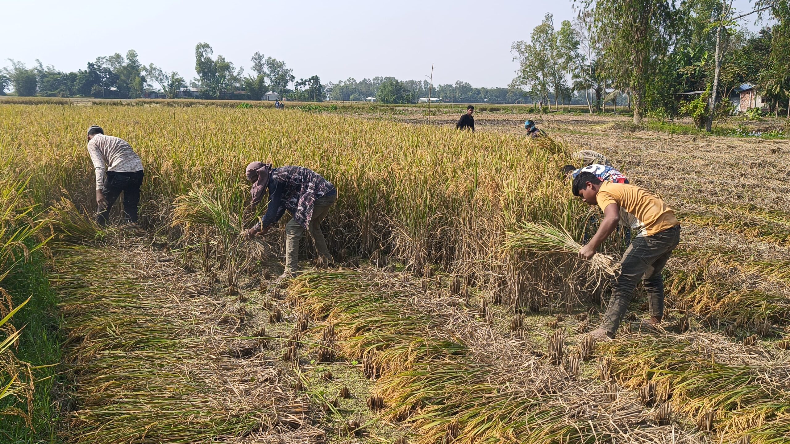 লালমনিরহাটের পাঁচ উপজেলা সদর, আদিতমারী, কালীগঞ্জ, হাতীবান্ধা ও পাটগ্রামে আমন ধান কাটার ব্যস্ততা এখন চূড়ান্ত পর্যায়ে। হেমন্ত শেষে শীতের আগমনী বার্তা ছুঁয়ে যাচ্ছে মাঠের পর মাঠ। বাতাসে ভেসে বেড়াচ্ছে নতুন ধানের মাদকতা, আর খুশির হাসি ফুটছে কৃষকের ক্লান্ত চোখে। সোনালি ধান ঘরে তুলতে ব্যস্ত কৃষকের ঘরে যেন ফিরে আসছে আশার আলো।