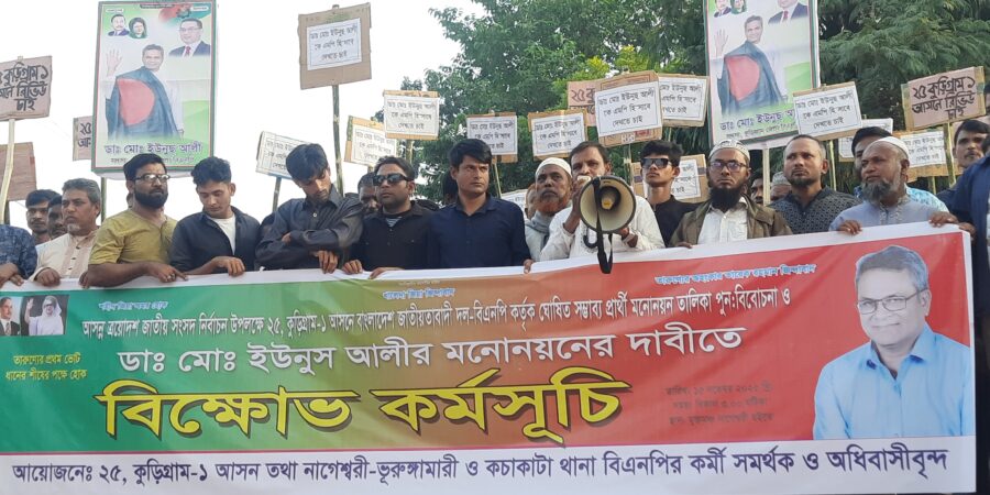শনিবার (১৫ নভেম্বর) জেলার নাগেশ্বরী উপজেলা শহরের বাস টার্মিনাল এলাকায় কুড়িগ্রাম-১ আসনে জেলা বিএনপির সদস্য ও ড্যাবের যুগ্ম সাধারণ সম্পাদক ডা. মো.ইউনুছ আলীকে মনোনয়ন দেওয়ার দাবিতে বিক্ষোভ করেন করেন হাজারো নেতা-কর্মী। কুড়িগ্রাম-১ আসনটি মূলত (নাগেশ্বরী -ভুরুঙ্গামারী উপজেলা) নিয়ে গঠিত। এ আসনে মোট ভাোটার প্রায় ৫ লাখ ২৯ হাজার।