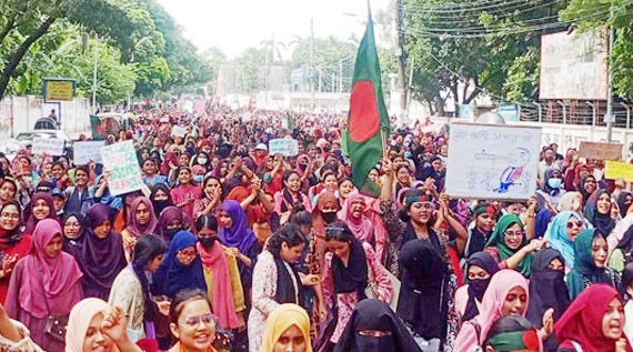 পরে এটি হলপাড়া হয়ে টিএসসি ঘুরে ক্যাম্পাসের বিভিন্ন সড়ক প্রদক্ষিণ করছে। বিক্ষোভকারীরা মিছিল নিয়ে বকশি বাজার মোড়-পলাশী-ইডেন কলেজ-নীলক্ষেত হয়ে শাহবাগের দিকে যান বলে জানা গেছে।