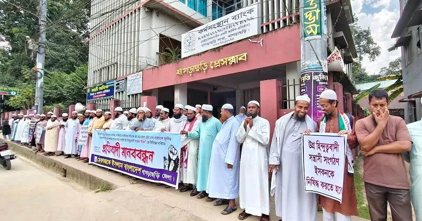 খাগড়াছড়িতে ইসকন নিষিদ্ধের দাবিতে হেফাজতের মানববন্ধন
