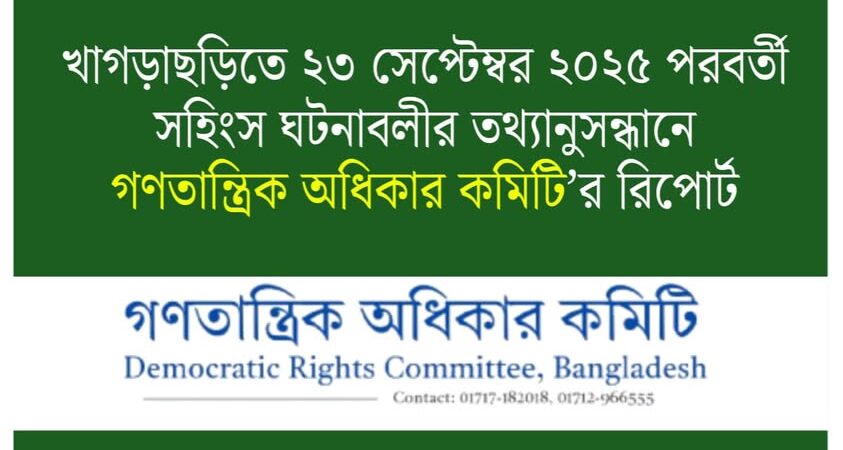 খাগড়াছড়ি পার্বত্য জেলাতে সহিংস ঘটনাবলীর ওপর গণতান্ত্রিক অধিকার কমিটির তথ্যানুসন্ধান রিপোর্ট প্রকাশ করেছে। গত ২৩শে সেপ্টেম্বর মারমা কিশোরীকে ধর্ষণের ঘটনার পরবর্তী খাগড়াছড়ি জেলা সদর ও গুইমারায় সংঘটিত সহিংস ঘটনাবলী তথ্যানুসন্ধানের পর গণতান্ত্রিক অধিকার কমিটি একটি তথ্যানুসন্ধান রিপোর্ট প্রকাশ করেছে।