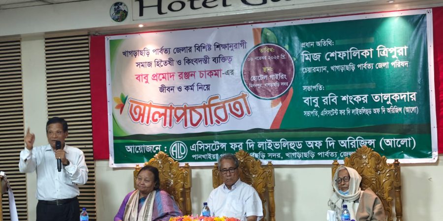 বৃহস্পতিবার(৬ই নভেম্বর) বিকেলে খাগড়াছড়ি হোটেল গাইরিং হোটেলের সম্মেলন কক্ষে এসিসটেন্স ফর দি লাইভলিহুড অফ দি অরিজিন্স (আলো) এনজিও-র আয়োজনে সমাজ হিতৈষী ও কিংবদন্তি ব্যক্তিত্ব প্রমোদ রঞ্জন চাকমা’র জীবন ও কর্ম নিয়ে আলাপচারিতা অনুষ্ঠিত হয়।