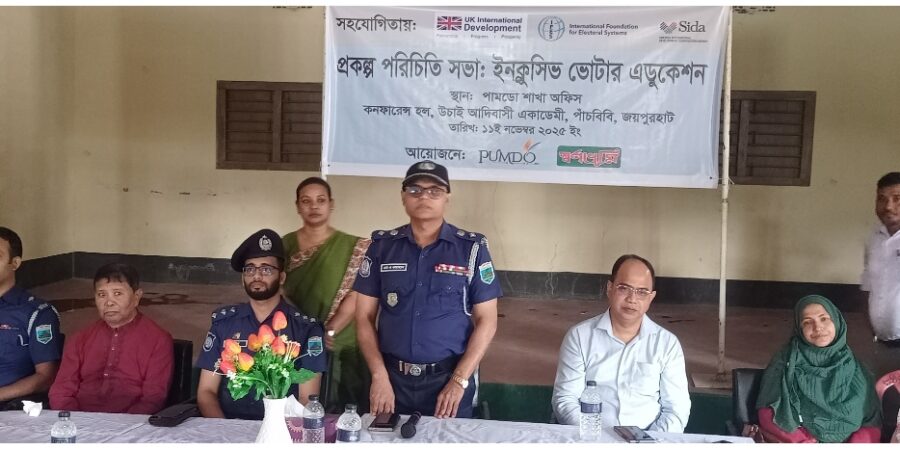 আগামী জাতীয় সংসদ নির্বাচনে আদিবাসী জনগোষ্ঠীর ভোটারদের স্বতঃস্ফূর্ত অংশ গ্রহণ ও সঠিকভাবে ভোট প্রদানের লক্ষ্যে জয়পুরহাটের পাঁচবিবিতে” ইনক্লুসিভ ভোটার এডুকেশন প্রকল্পের ” আওতায় ভোটার অর্ন্তভুক্ত মূলক শিক্ষা প্রকল্পের উদ্বোধন ও প্রকল্প পরিচিতি সভা অনুষ্ঠিত হয়েছে।