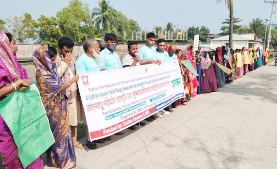 টেকসই বেড়িবাঁধসহ সাত দফা দাবিতে সাতক্ষীরায় নারীদের মানববন্ধন
