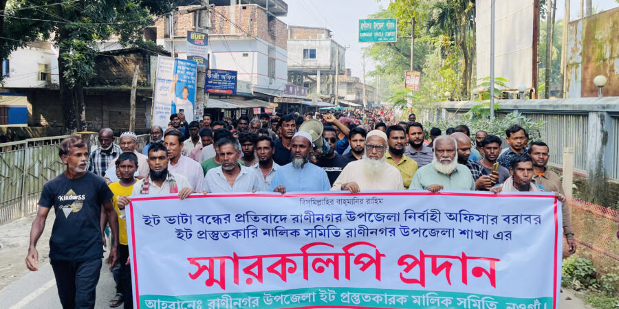 নওগাঁর রাণীনগরে ইটভাটা বন্ধের প্রতিবাদে মালিক-শ্রমিকদের বিক্ষোভ ও স্মারকলিপি প্রদান