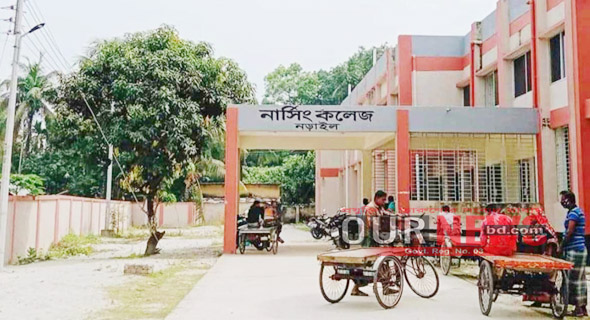 ‘নড়াইল নার্সিং কলেজের অবস্থা আমরা কি এখানে ঝাড়ু দিতে এসেছি, নাকি নার্সিং পড়তে’ শিক্ষক, অফিস সহকারী, অফিস সহায়ক, ঝাড়ুদার, কুক মাশালচিও নেই। ক্লাস রুম ঝাড়ু দিতে হয় নিজেদের। এমনকি রান্নার জন্য তরকারিও কাটতে হয়। স্যাররা বলছেন, বাইরে থেকে যারা আসে, তাদের এখন থেকে গেটেও ডিউটি করতে হবে। আমরা কী এখানে ঝাড়ু দিতে বা তরকারি কাটতে এসেছি? নাকি নার্সিং পড়তে এসেছি?’