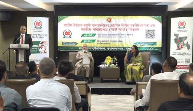 সভা শেষে নির্বাচন কমিশনার প্রবাসীদের হাতে জাতীয় পরিচয়পত্র (স্মার্টকার্ড) বিতরণ করেন।