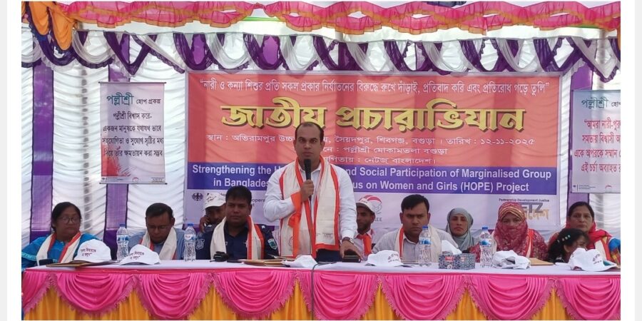 নেটজ্ বাংলাদেশের সহযোগিতায় এবং বেসরকারি স্বেচ্ছাসেবী সংস্থা পল্লীশ্রী বাস্তবায়িত “বাংলাদেশের প্রান্তিক জনগোষ্ঠী—বিশেষ করে নারী ও কন্যাশিশুর সামাজিক ও মানবাধিকার অংশগ্রহণ জোরদারকরণ (হোপ)” প্রকল্পের আওতায় এ কর্মসূচির আয়োজন করা হয়।
