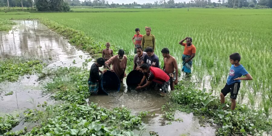 বগুড়ার শিবগঞ্জে ঈদমাঠের জায়গা দখলমুক্ত করে পোনা মাছ অবমুক্ত