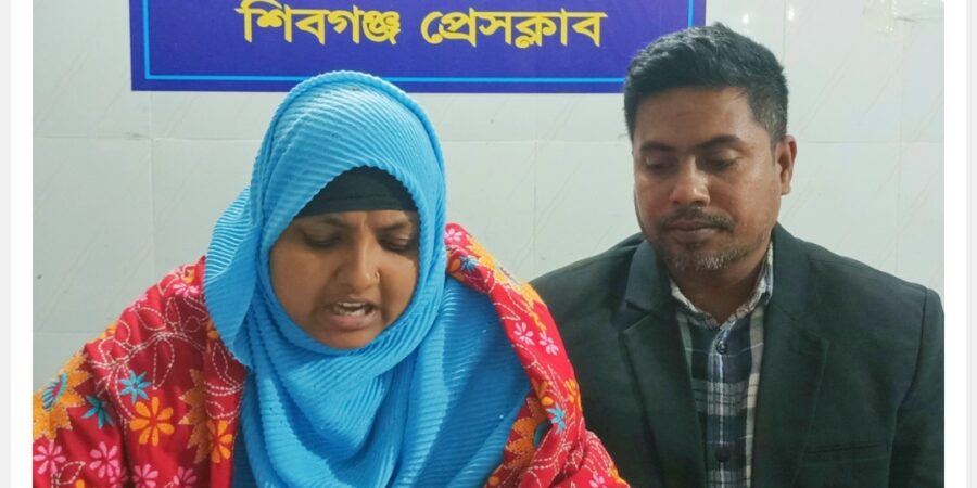 বগুড়ার শিবগঞ্জে মিথ্যা মামলার প্রতিবাদে নারী উদ্যোক্তাকে হত্যার হুমকির প্রতিবাদে শনিবার সন্ধ্যায় শিবগঞ্জ প্রেসক্লাবে সংবাদ সম্মেলন করেছেন উপজেলার নারী উদ্যোক্তা আয়েশা সিদ্দীকা খাতিজা।