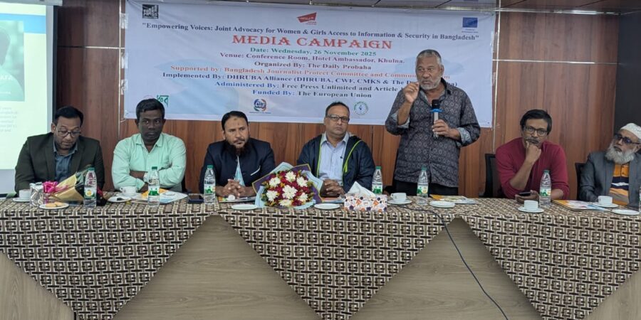 ডিজিটাল প্ল্যাটফর্মে কর্মরত মিডিয়া কর্মীদের পেশাগত দক্ষতা বৃদ্ধি, নিরাপত্তা সচেতনতা এবং আধুনিক সাংবাদিকতার কর্মপদ্ধতি নিয়ে খুলনায় অনুষ্ঠিত হলো দিনব্যাপী “মিডিয়া ক্যাম্পেইন–২০২৫”।