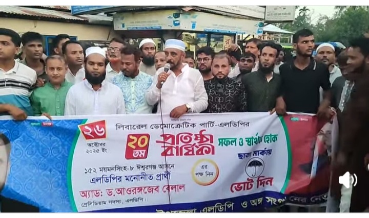 ময়মনসিংহের ঈশ্বরগঞ্জে এলডিপির ২০তম প্রতিষ্ঠা বার্ষিকী উদযাপন