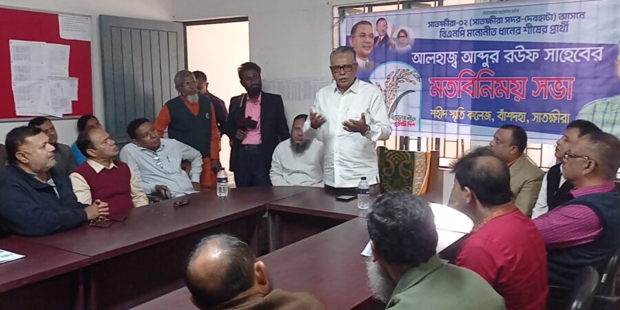 সোমবার (২৪ নভেম্বর) সকাল সাড়ে ১১টায় সাতক্ষীরা সদরের বাঁশদহা ইউনিয়নের শহীদ স্মৃতি কলেজের আয়োজনে কলেজের শিক্ষক মিলনায়তনে কলেজের ভারপ্রাপ্ত অধ্যক্ষ দীপক কুমার মল্লিকের সভাপতিত্বে মতবিনিময় সভায় প্রধান অতিথি হিসেবে বক্তব্য রাখেন সাতক্ষীরা-২ আসনের ধানের শীষের প্রার্থী জননন্দিত নেতা আলহাজ্ব মো. আব্দুর রউফ।