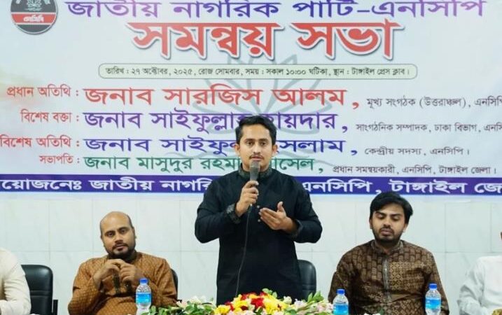সোমবার (২৭ অক্টোবর) দুপুরে টাঙ্গাইল প্রেসক্লাবে সংগঠনের জেলা সমন্বয় সভায় প্রধান অতিথি হিসেবে যোগদান শেষে সাংবাদিকদের সারজিস আলম এ কথা জানান।