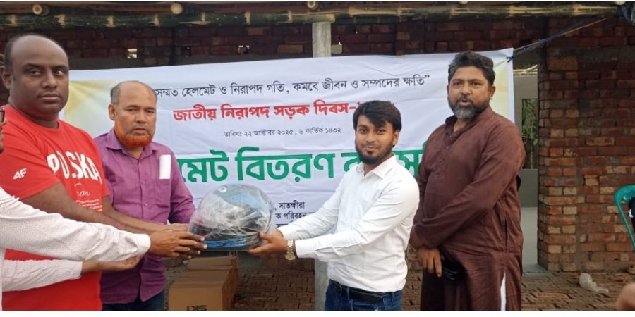 সাতক্ষীরার শ্যামনগরে “মানসম্মত হেলমেট ও নিরাপদ গতি, কমবে জীবন ও সম্পদের ক্ষতি” এই প্রতিপাদ্যকে সামনে রেখে জাতীয় নিরাপদ সড়ক দিবস উপলক্ষে হেলমেট বিতরণ কর্মসূচি অনুষ্ঠিত হয়েছে।