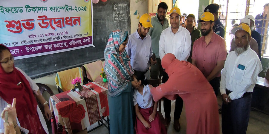 টাইফয়েড টিকাদান ক্যাম্পেইনে জেলার প্রথম নওগাঁর রাণীনগর উপজেলা