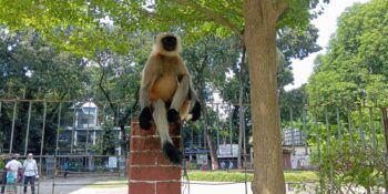 নওগাঁর আত্রাইয়ে লোকালয়ে হুনুমান। উৎসুক জনতার ভীড়। সোমবার (৬ অক্টোবর)