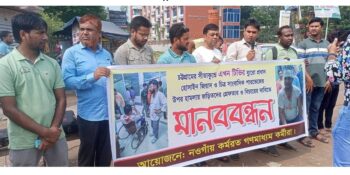নওগাঁয় সীতাকুন্ডের সাংবাদিকের উপর সন্ত্রাসী হামলার প্রতিবাদে মানববন্ধন