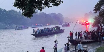 লক্ষ্মীপূজা উপলক্ষে মেলা নওগাঁর রাণীনগরে ছোট যমুনা নদীতে শত শত নৌকার নৌবহর