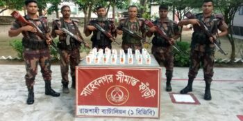 রাজশাহীর গোদাগাড়ীতে সীমান্তে বিজিবির অভিযানে ভারতীয় মদ জব্দ